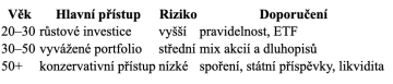 20–30 let: dynamické investice, růstové portfolio.
